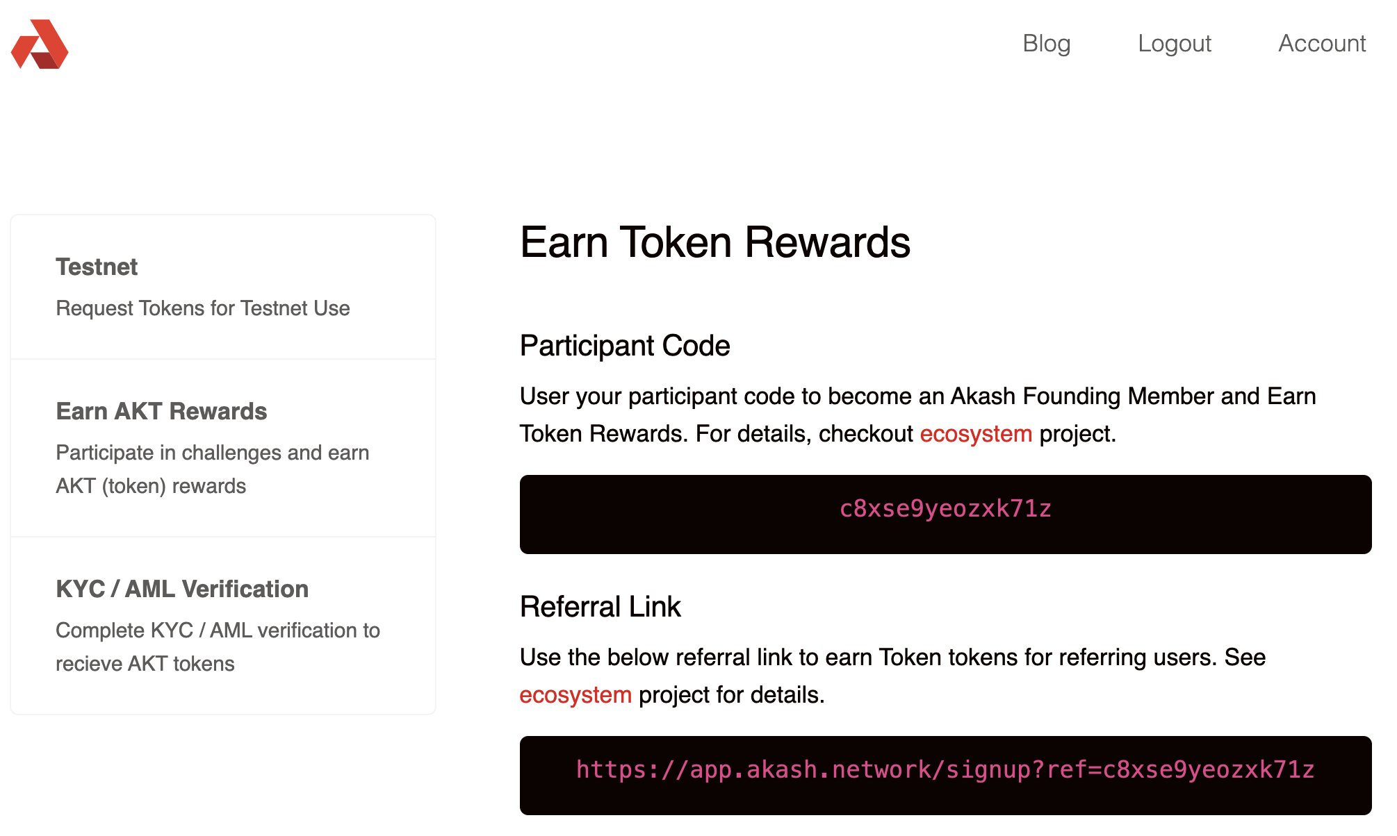 访问 https://akash.vitwit.com/faucet 过人机检验,复制ACCOUNT_ADDRESS到表单提交,会给100个测试币。